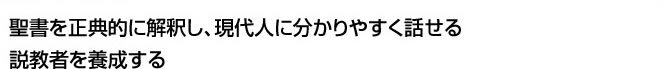 聖書は、信仰と生活の規範(カノン―正典)ですから、キリストの言葉を中心に解釈し、その教えを生活で実践しなければ意味がありません(ヨハネ5:39「聖書はわたしについて証しをするものだ」)。それを伝えるためには、キリストへの信仰によって良い実を結んだ人たちの実話を必ずメッセージに含めなければならないのです。一方、実話だけですと、 次第に人間中心の話になり、聖書に書いていないことまで主張するようになりがちです。聖書からの使信を押さえた上で、それを証しする実話を入れるのが、本校で学ぶ説教の基本形です。